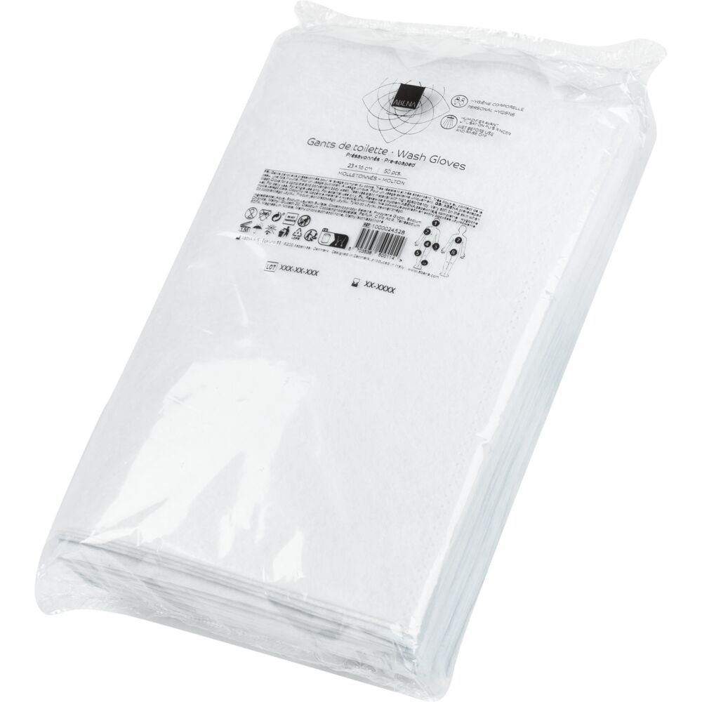 Les gants de toilette à usage unique sont à 100% polyester ce qui en fait une matière douce et agréable au contact de la peau.
