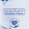 Il se lave à 60° et ne se repasse pas. 96% polyester et 4% élastane.