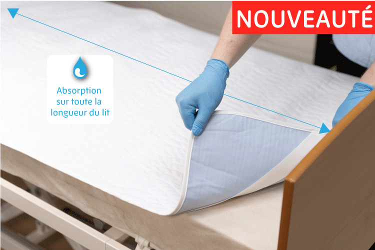 Le verso de l'alèse est de couleur bleu ciel. C'est cette face bleu ciel qui doit être posée contre le matelas.